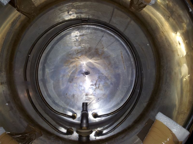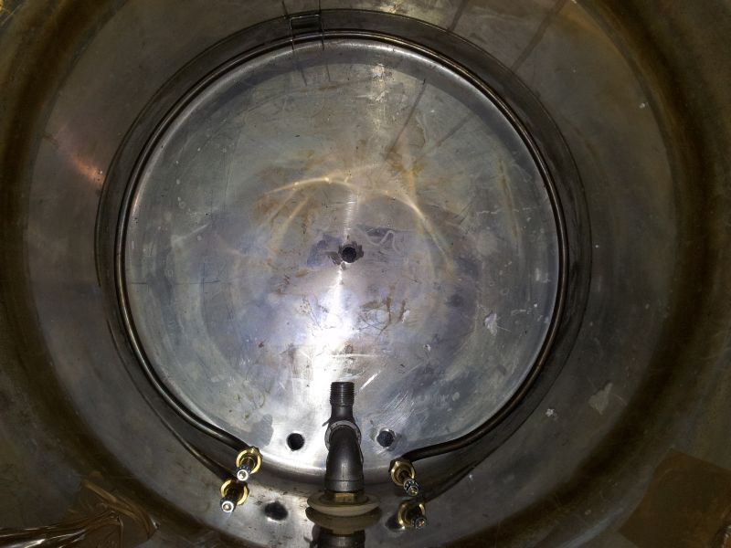 Poi ho forato la pentola porta malto di sotto con un seghetto alternativo