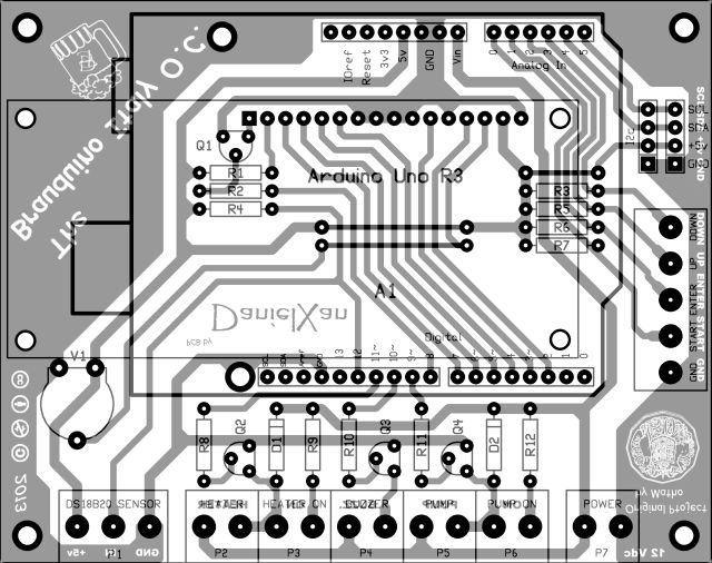 1:) Brauduino Che è lo sbroglio Monofaccia preso spunto dal PCB Doppiafaccia proposto nel forum estero di BrauDuino